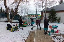 Несмотря на холод, сотрудники ДОУ, организовали субботник по очистке территории от наледи и снега.
