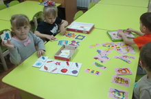 Воспитатель, учит сопоставлять предметы, выделять основные признаки. Воспитывает у детей наблюдательность; умение находить в предметах сходство и различие; активизирует словарь детей: похожие, разные, одинаковые. Выигрывает тот, кто не ошибётся.Дети сидят за столом, на котором лежит 10-12 карточек, некоторые одинаковые. Воспитатель, просит найти и назвать одинаковые и показать их играющим. Потом воспитатель предлагает найти одинаковые картинки ( три и более). Среди картинок могут быть похожие, но не одинаковые (чашки с ручкой и без неё). Очень интересная и увлекательная игра.Попробуйте и вы, уважаемые родители, поиграть с детьми на досуге.