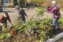 Коллектив детского сада провел уборку и очистку цветников от сухостоя.