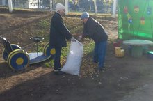 Коллектив детского сада вышел на очистку территории ДОУ от листьев и мусора.