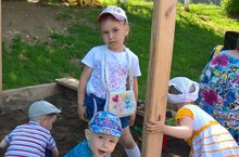Мы в песочнице играем,Строим домик из песка,Увлеклись, не замечаем,Что носки полны песка.
