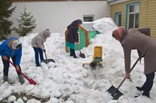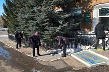 Начались субботники по очистке территории от снега и мусора. Сегодня коллекив ДОу провел средник.