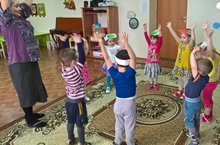 Ралия Исмагиловна, с детьми младшей группы закрепляет игру "Бар безнен бакча".