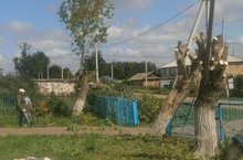 Коллектив школы занимается благоустройством школы: формируют кроны деревьев.