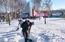 Сегодня учащиеся 9 класса расчистили снег на памятнике ВОВ