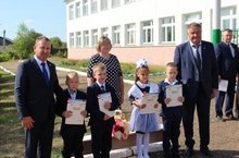 Трогательный момент каждой школьной линейки – первый звонок, который вместе подают ученик выпускного класса и маленькая девчонка-первоклассница. В Краснооктябрьской школе на своем сильном плече нес первоклассницу Темников Иван ученик 9-го класса. Затем Вячеслав Козлов и Алмаз Хисамутдинов провели школьный урок, где поговорили о социально-экономическом развитии страны, патриотизме, любви к малой Родине и ответили на вопросы ребят. -