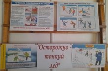 В рамках месячника безопасности на водных объектах была оформлена выставка «Осторожно – тонкий лед!»