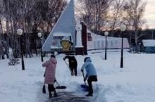 В рамках патриотического воспитания ребята очистили территорию памятника павшим землякам в ВОВ от снега.