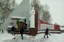 Сегодня ребята нашей школы очистили памятник погибшим в Великой Отечественной войне от снега.