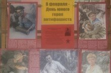 Сегодня библиотекарь Козлова Л.А. совместно с советом старшеклассников оформили стенд на тему «8 февраля – День юного героя антифашиста»