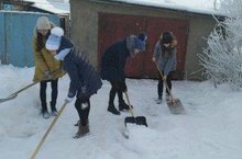 Сегодня волонтеры нашей школы посетили одиноких престарелых жительниц села Кабирову Х.В. и Фахретдинову Ш.С.. Они помогли им очистить снег около дома после сильного снегопада.