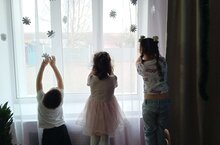 Дети принимают участие в украшение музыкального зала для проведения новогоднего карнавала 05.12.2025