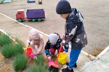 Наши маленькие помощники, благоустройство клумбы 22.04.2024