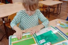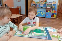 Дети знакомятся с лэпбуком, который примет участие в муниципальном конкурсе "Лучший детский познавательный лэпбук" 17.03.2023
