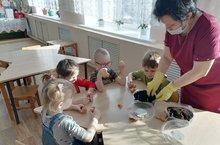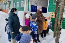 Старшая группа совместно со специалистом сельской библиотеки повесили кормушку для кормления птиц. 10.02.2021