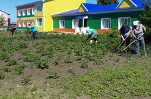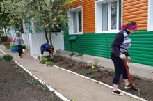 Сотрудники на клумбы детского сада высадили 180 корней цветов (бархатцы, петунью, львный зев, годеции, васелек и др) 12.05.2020