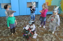 Воспитатель младшей группы Васина Н.В. провела игру «Зайчики и мишки танцуют у ёлочки»