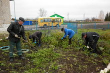 30.08.2014.Сотрудники МБДОУ «Ленинский детский сад «Ляйсан» участвовали в экологическом субботнике, в котором принимали участие восемь сотрудников. На территории детского сада скосили траву, подмели дорожки, собрали мусор, скосили траву на игровой площадке. На территории закрепленной по селу собрали мусор.