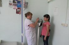 Перед началом летней лагерной смены работник ФАПа провела антропометрические измерения учащихся и медицинский осмотр.