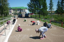 Сегодня у учащиеся начальных классов началася летний - оздоровительный лагерь. Первый день смены совпал с Днём защиты детей, в связи с этим был проведён конкурс рисунков на асфальте "Мир глазами детей".