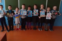 "Поехали" конкурс рисунков ко Дню Космонавтики в 1 классе.