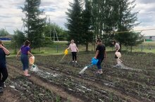 Трудовой десант в пришкольном лагере "Берёзка".