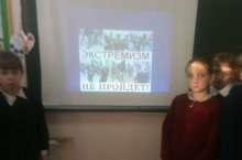 Продолжается работа по профилактике терроризма и экстремизма. В начальных классах прошли классные часы на тему: "Экстремизм не пройдет!"