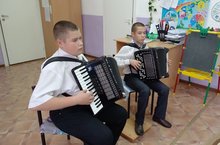 Учащиеся музыкального отделения класс баяна и класс сольного пения посетили детский сад "Ландыш" и порадовали их своим выступлением. Братья Темниковы Григорий и Степан исполнили народное поизведение "Конь", свои песни подарила малышам Анастасия Ерашова.