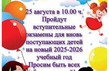 25 августа в 10.00 пройдут вступительные испытания для вновь поступающих в детскую школу искусств по специальностям: хореографическое творчество, декаративно-прикладное искусство, баян, фортепиано, сольное пение.