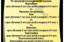Детская школа искусств объявляет дополнительный набор на отделение хореографии, изобразительное искусство. На музыкальном отделении на баян - свободно 1 место, фортепиано - 1 место, сольное пение - 1 место.