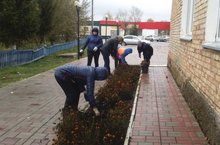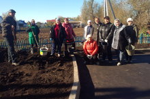 Коллектив работников ДШИ и сельских домов культуры приняли участие в посадке газона.