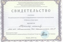 Детская школа искусств приняла участие в республиканском конкурсе информационно-социальных видеороликов "Ребенок в мире права" и стала обладателем свидетельства участника.