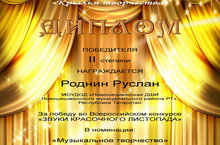 Роднин Руслан ученик 2 класса принимал участие во Всероссийском конкурсе "Звуки красочного листопада" и стал победителем II место