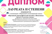 Образцовый хореографический ансамбль «Шешминка» группа «Солнечное сияние» принял участие во II Межрегиональном конкурсе «Мириада талантов» и получил Диплом Лауреата II степени в номинации «Народный стилизованный танец танец». Поздравляем ансамбль с призовым местом и желаем творческих успехов!