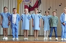 На сцене концертного зала школы прошел контрольный урок по хоровому пению в 1 классе ФГТ. Маленький хор первоклашек исполнил 4 хоровых песни "Голубой вагон", "Солнечная капель", "Пожалуйста не жалуйся", "Взрослые и дети".