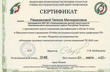 Преподаватеь Рамазанова Г.М., председатель ПО Новошешминской ДШИ прошла курсы повышения квалификации в учебно-исследовательском центре профсоюзов Федерации профсоюзов республики Татарстан по теме "Кадровое делопроизводство: соблюдение трудового законадательства с учетом изменений ТК 2023 года" в количестве 8 часов.