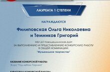 Концертмейстер Филиповская О.Н. и учащийся класса баяна Темников Григорий приняли участие в Десятом Международном конкурсе "Таланты России" и получили Диплом Лауреата I степени в номинации "Музыкальное творчество". Педагог Минаева М.Н.Поздравляем Ольгу Николаевну, Григория и педагога марину Николаевну с успешным выступлением и желаем творческих побед!