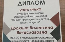 Преподаватель по классу хореографии Ерохина В.В. приняла участие в I туре (региональном) общероссийского конкурса "Лучший преподаватель детской школы искусств"