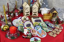 На ярмарке были представлены к продаже поделки детей и педагогов: новогодние свечи, чайные домики, новогодние гномы, сувенирная продукция. -