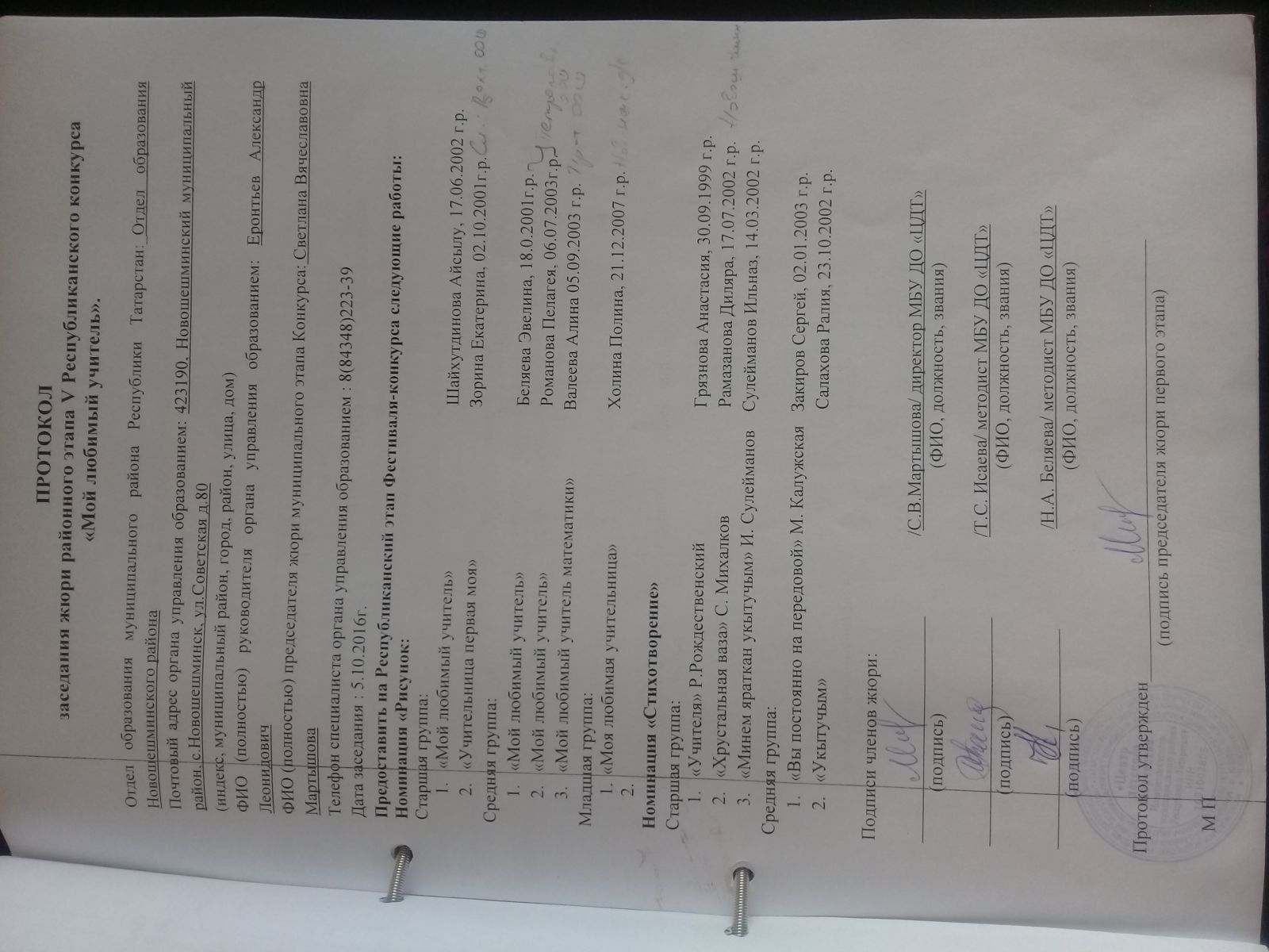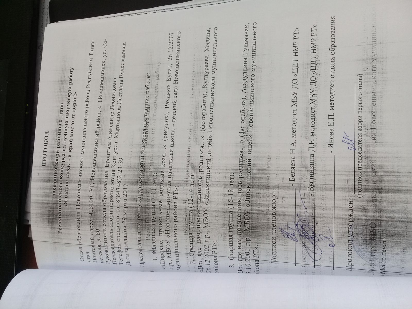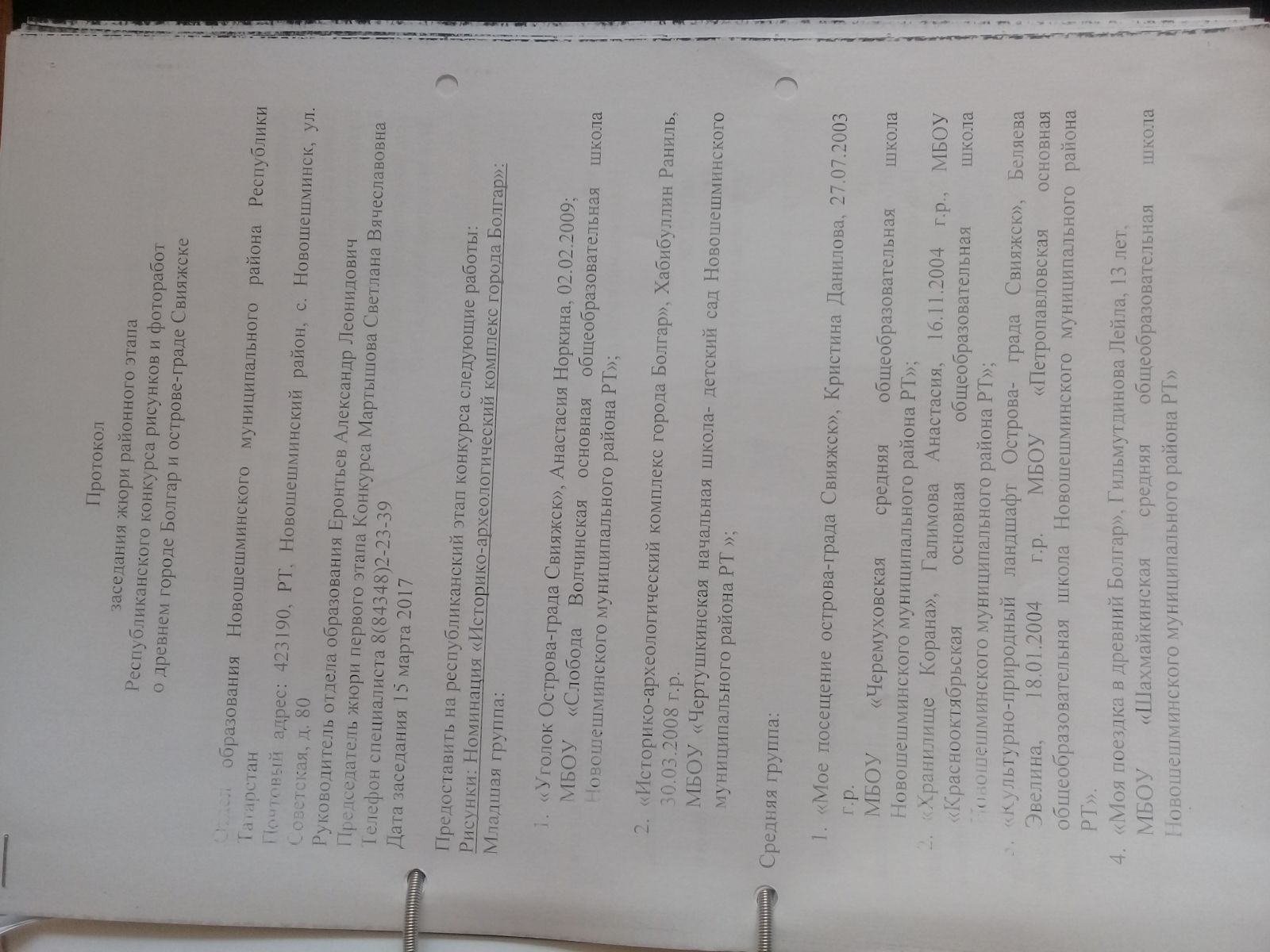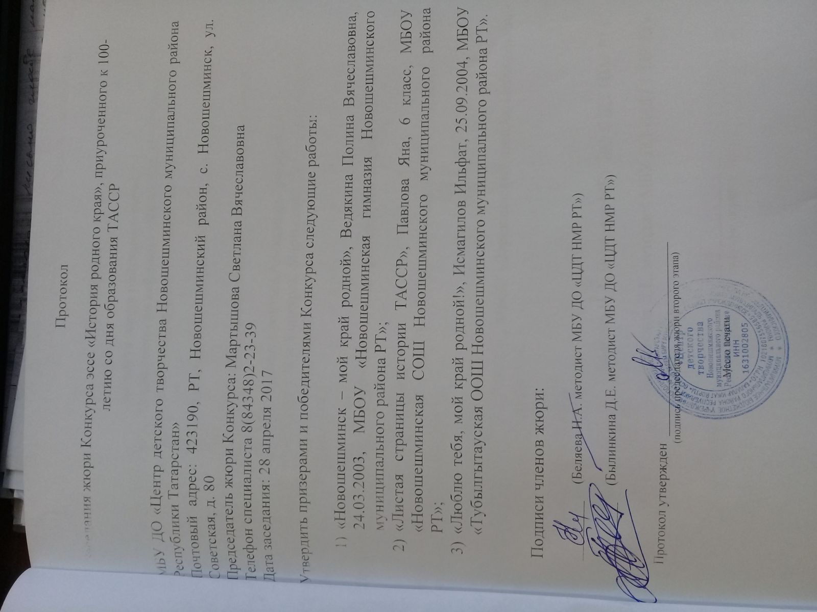Победители муниципального уровня (протокола заседания жюри):