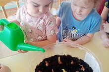 Перед посадкой мы провели беседу о пользе лука, о его лечебных свойствах, умение правильно высаживать лук на зелень. У детей сформировались знания о том, в каких условиях можно выращивать лук, о трудолюбии и бережном отношении.