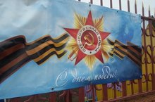 На улице установили баннеры, а в здании д.с. повесили плакаты в честь "Дня победы "