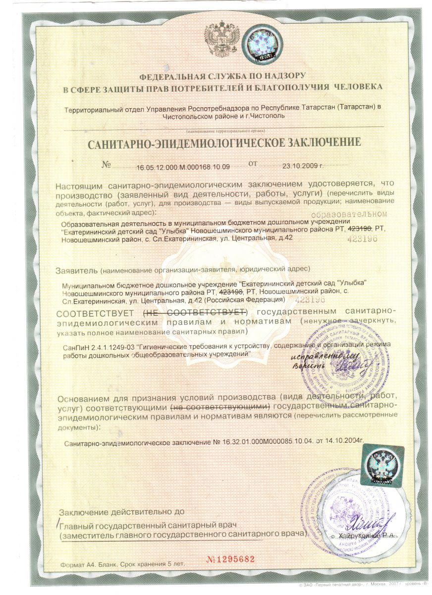 Санитарно-эпидемиологическое заключение.