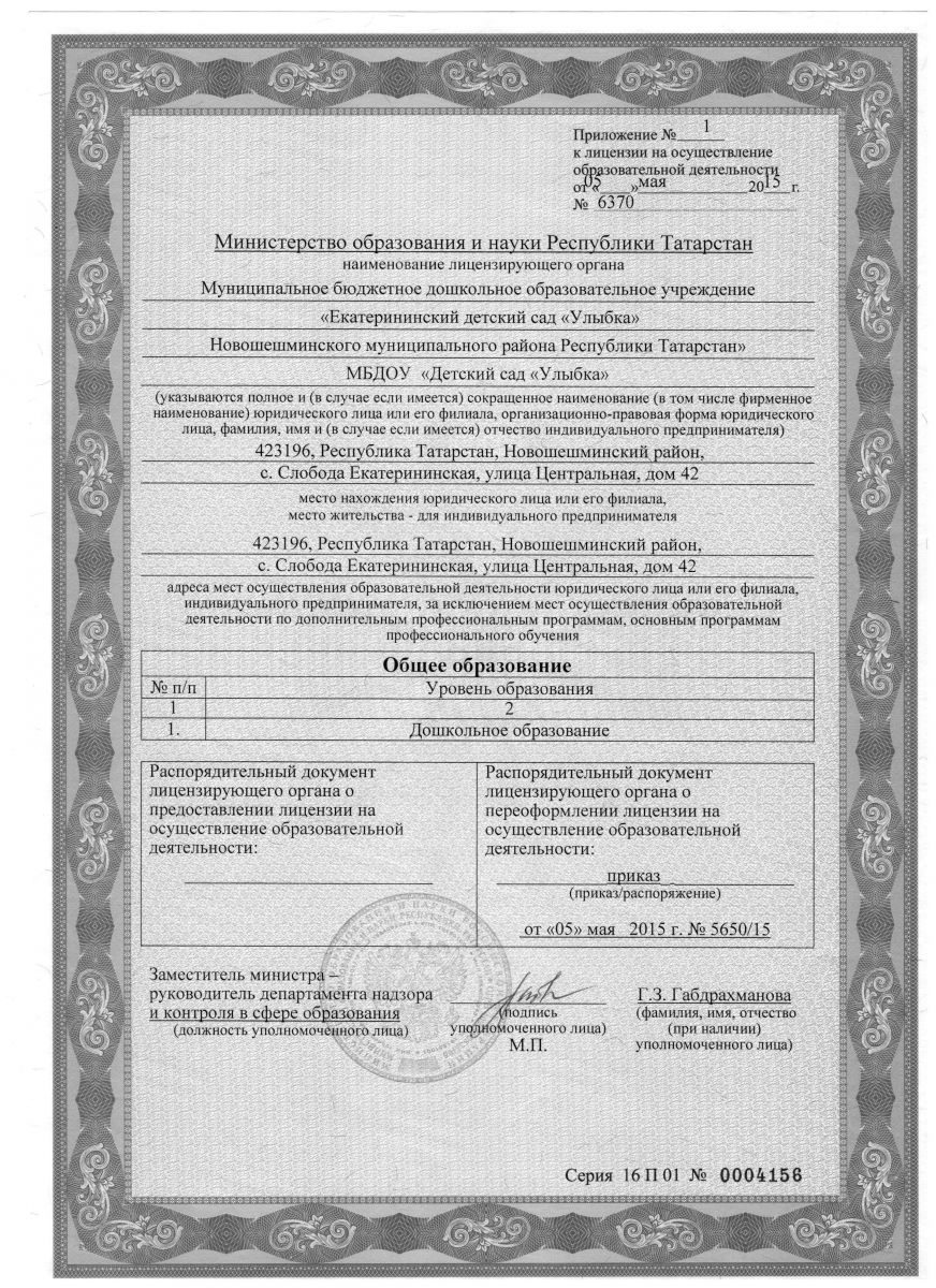 | Адрес: | 423196, Республика Татарстан, Новошешминский район, с. Слобода Екатерининская, ул. Центральная, д.42 |
