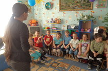 Ученики вместе с учителем татарского языка общались с ребятами детского сада "Солнышко" на втором государственном языке (татарском). Учитель задавала вопросы, а ребята смело и активно отвечали на татарском языке, а так же немного поиграли. Педагогу татарского языка понравилось произношение и желание детей разговаривать на втором языке.