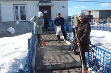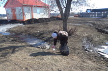 Сотрудники детского сада "Солнышко" убирают территорию Петропавловского сельского поселения. 30.03.2015