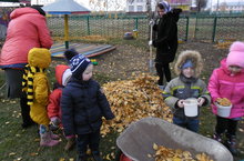 "Ну, вот наступила осень, деревья приняли золотые обличья, жаль только, что эта красивейшая пора длится так не долго. И на нашем участке образовался золотой ковёр. И мы с ребятами принялись за работу, сбор листьев.