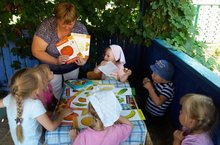 Ребята нашего детского сада вместе с библиотекарем Волчинской сельской библиотеки совершили путешествие в Огород. Такова была тематика экологической викторины "Травинка-витаминка". Дети узнали о полезных свойствах растений,овощей и фруктов, разгадывали загадки. играли в игру "Свари обед". "Угадай что в мешочке".Угостили всех яблоками.