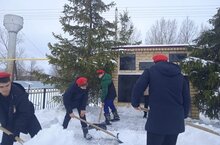 Сегодня прошла работа по уборке снега на территории школы и очистка отмостки от наледи.