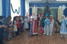 Праздник начался весёлой музыкой. Много разных приключений, чудес и испытаний прошли герои вместе с детьми. На праздник прибыли настоящие Дед Мороз и Снегурочка! Учащиеся порадовали присутствующих прекрасными песнями, стихами и играми. Дед Мороз и Снегурочка вручили каждому участнику праздника новогодние подарки. Доброго вам здоровья, благополучия! Пусть год Быка принесет вам удачу в Новом году!